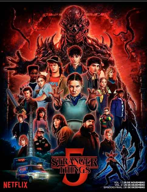 Quase uma década desde que Stranger Things veio ao ar pela Netflix, se tornando um dos seus maiores sucessos, vimos as crianças protagonistas da série passada nos anos 80 cresceram em meio aos perigos do Mundo Invertido. A série nasceu da mente dos irmãos Matt e Ross Duffer, que se inspiraram em clássicos daquela década do século passadocomo os filmes de Steven Spielberg (E.T.), John Carpenter (The Thing) e do escritor Stephen King (It). A proposta era unir ficção científica, terror e drama adolescente em uma narrativa ambientada na fictícia cidade de Hawkins, Indiana. O último episódio da quinta temporada estreiou dia 31 de dezembro.