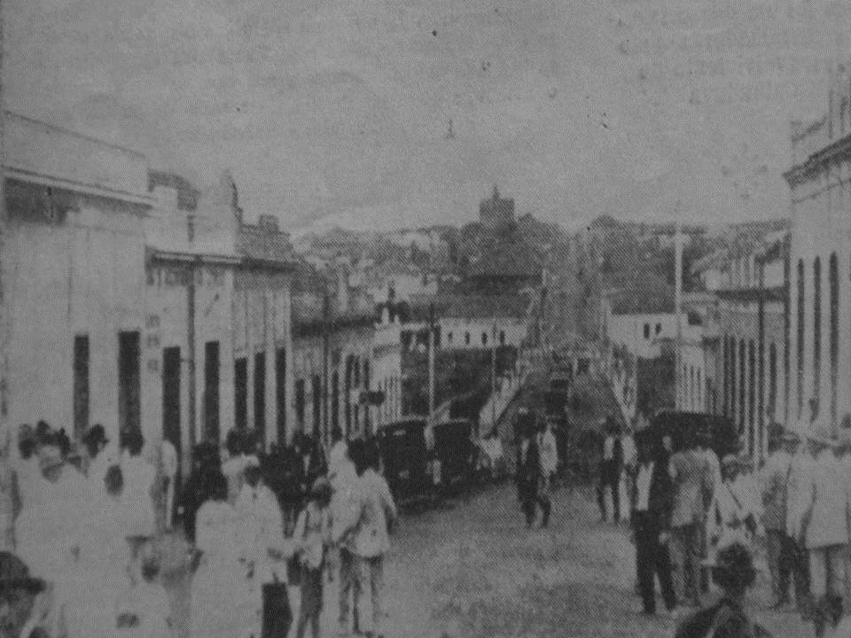 Foto: Rua Brasil no ano de 1922, pegando como destaque a ladeira da E.F.A. Neste ano, Catanduva contou com uma festa maravilhosa, em comemoração ao centenário da Independência do Brasil.