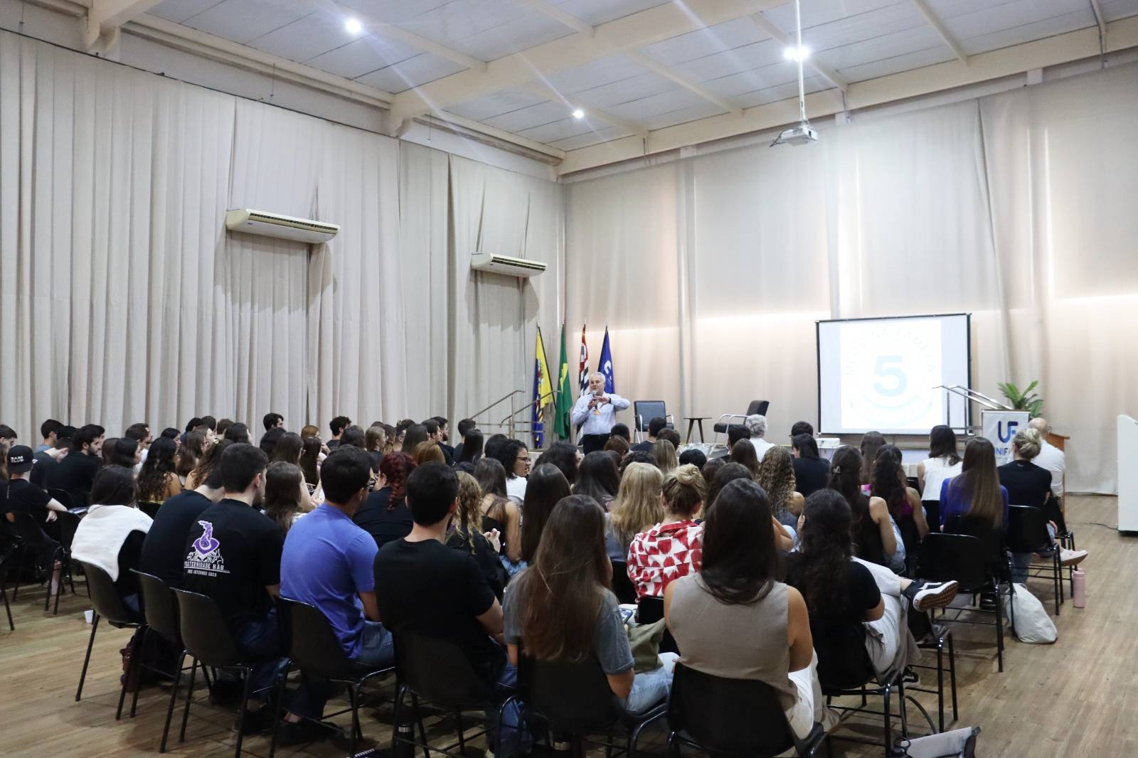 O coordenador do curso de Medicina, Prof. Dr. Jorge Luís Valiatti, fez breve saudação aos alunos, reforçando a relevância do Internato para a trajetória profissional e para a prática médica; já a Dra. Leila Renata Ramires Masteguin, do Departamento Jurídico da Unifipa, abordou aspectos relacionados às responsabilidades legais e éticas inerentes ao exercício da Medicina.