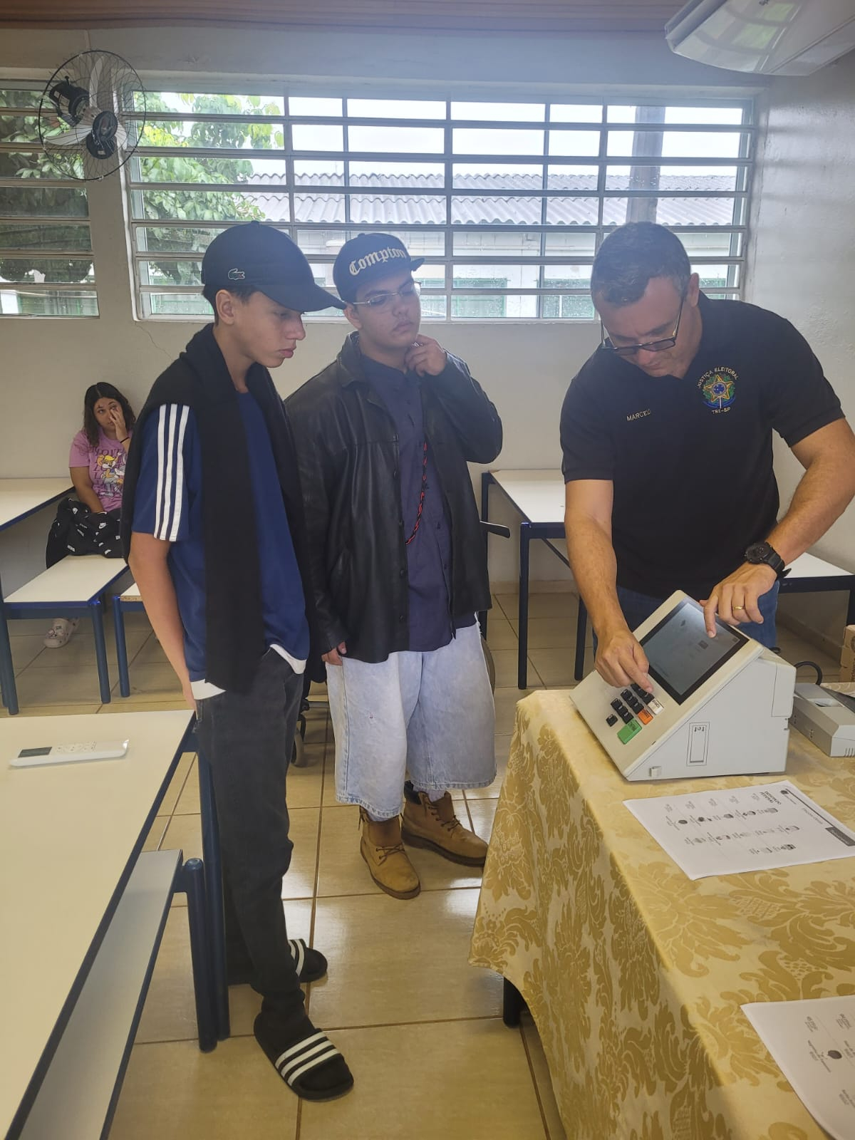 Um dos momentos de destaque foi a simulação de uma eleição com o uso de urna eletrônica real. Os próprios alunos assumiram diferentes funções, atuando como eleitores e mesários, o que possibilitou uma experiência prática e significativa. Ao final da votação, foi emitido o boletim de urna, permitindo que os participantes acompanhassem o processo de apuração dos votos.