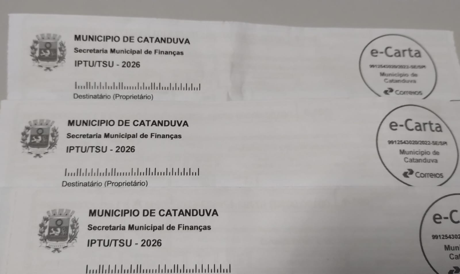 A entrega dos carnês do IPTU 2026 pelos Correios já teve início em Catanduva, inclusive de forma antecipada em relação à data inicialmente prevista, que era 15 de fevereiro. Desde janeiro, os contribuintes também já contam com a opção de acessar e imprimir o documento diretamente pelo site da Prefeitura de Catanduva (www.catanduva.sp.gov.br).