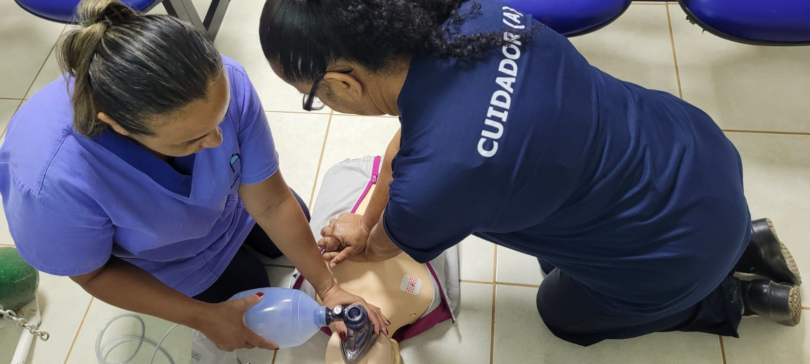 Durante o curso foram trabalhados temas como emergências cardiovasculares, respiratórias, anafiláticas e metabólicas, além de crises convulsivas, quedas com fraturas e acidentes com animais peçonhentos. Um dos destaques foi o suporte em RCP (Reanimação Cardiorrespiratória), realizado conforme as diretrizes da American Heart Association (AHA), incluindo treinamento em manequins, permitindo que os cuidadores vivenciassem situações próximas da realidade.